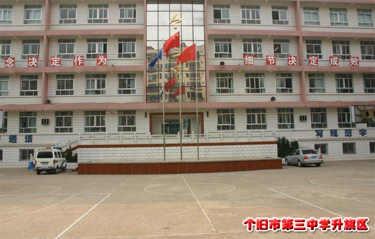 个旧市第三中学位于原个旧市第一中学校址。该校校园占地面积大,环境优雅,地势层叠;学校基础设施完善,是一所无论师资、现代教学设备等方面都具有较高水准的高级中学。