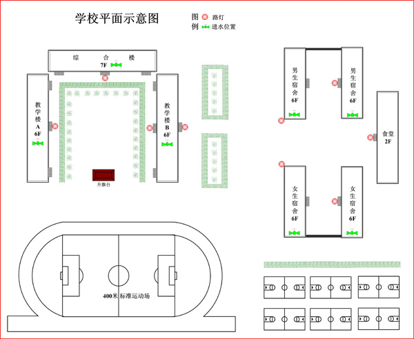 2. 学生宿舍(生活区)灯光。同样,可以采用楼栋、楼层为控制单元。实现程序开关的同时,具有灵活手动/自动转换功能,方便宿管人员操作控制和应对突发事件。